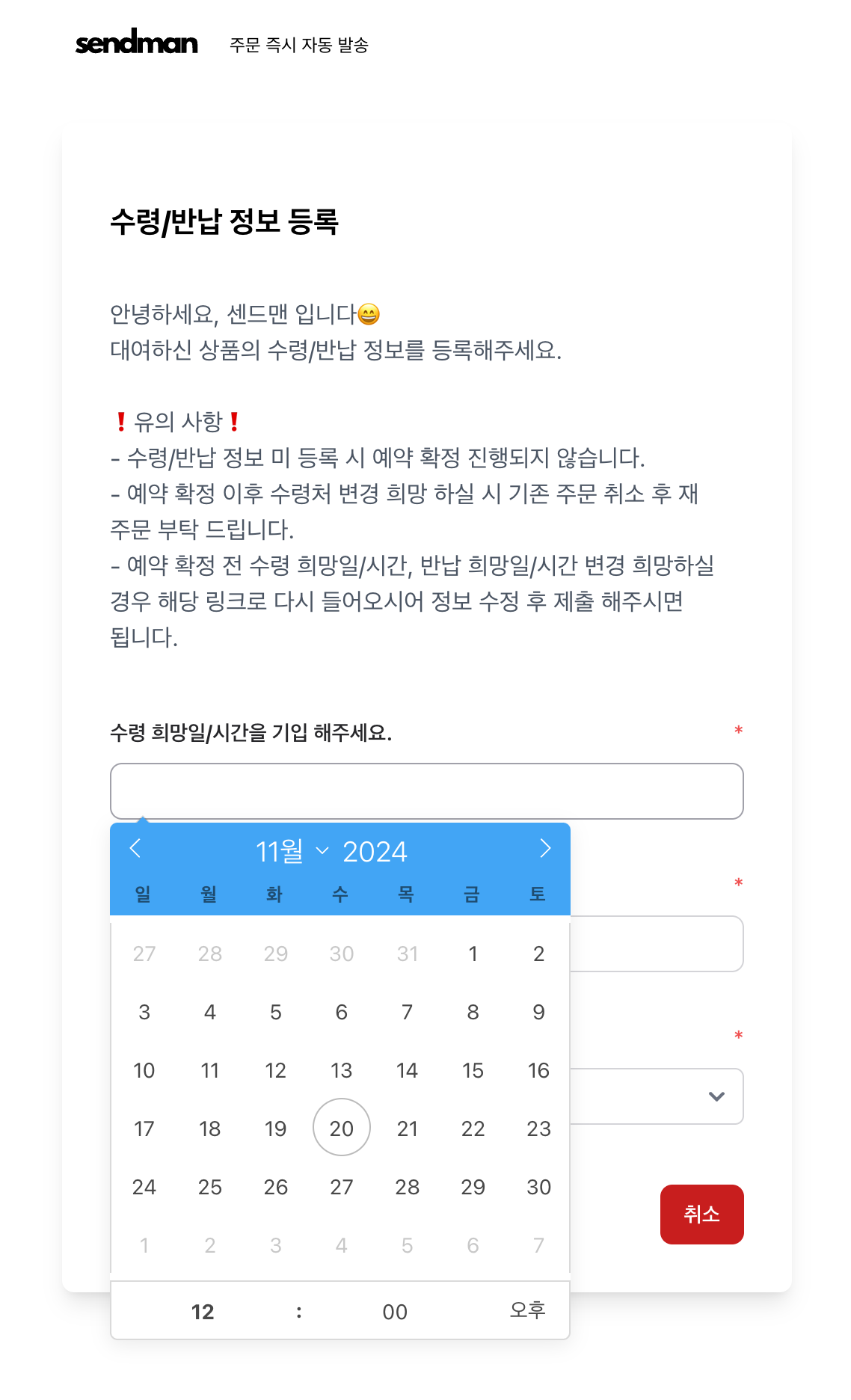 이런 판매자분들을 위해 센드맨이 "입력 폼" 을 준비했습니다.