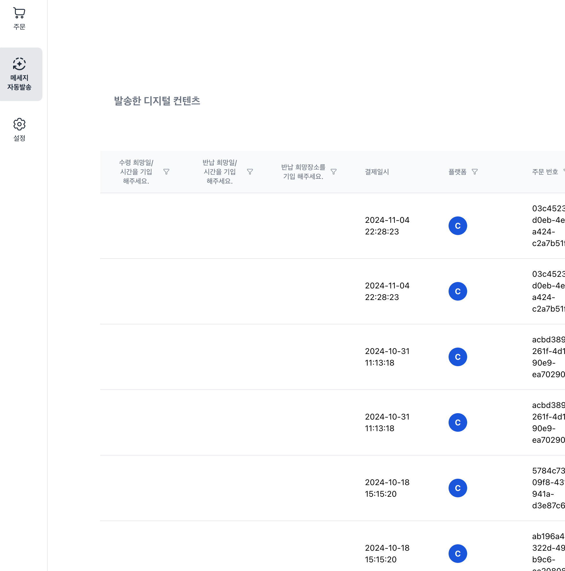 [메세지 자동발송] - [디지털 컨텐츠] 페이지에서 아까 만든 입력 폼을 눌러보세요.