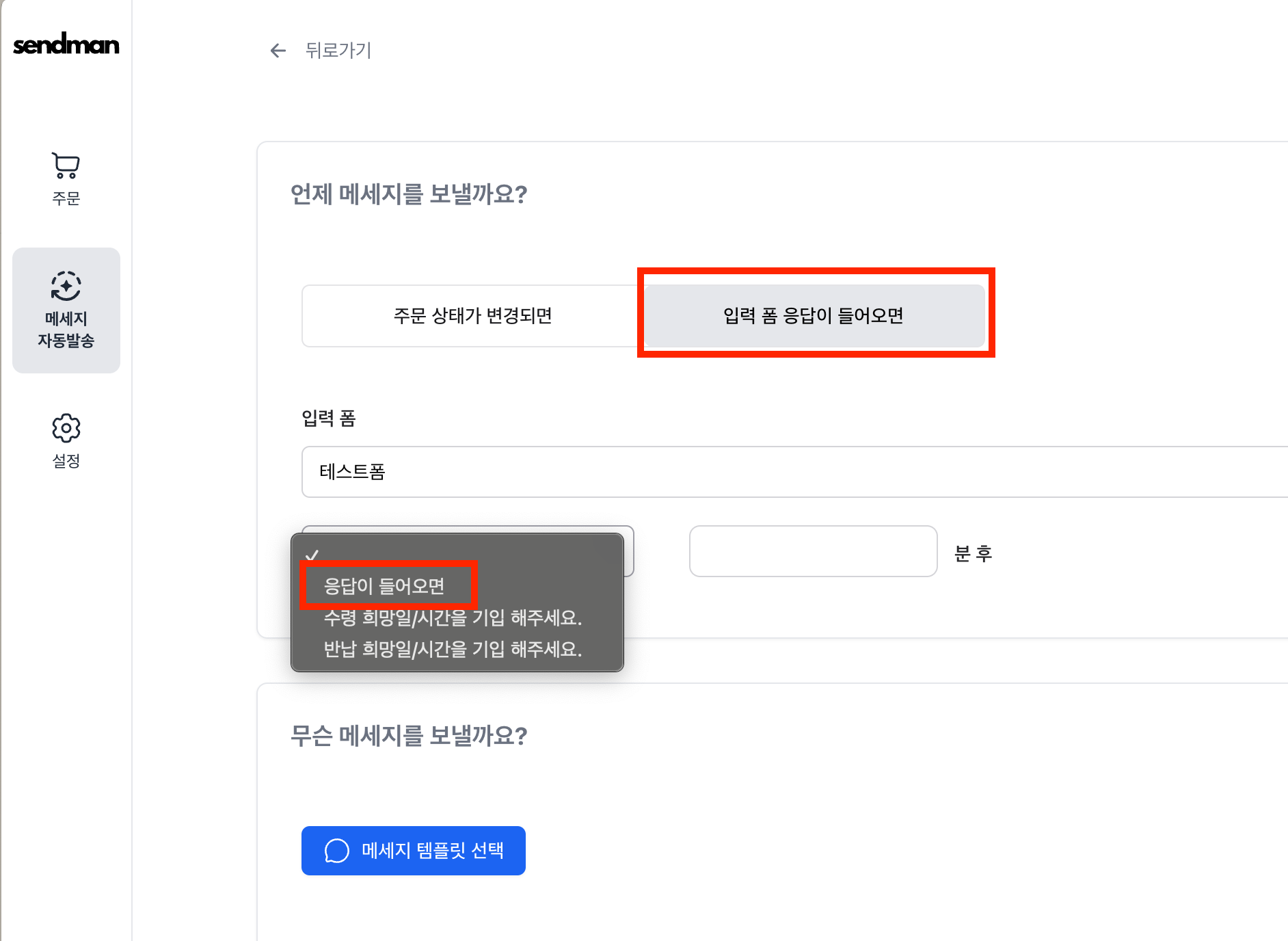 "응답이 들어오면"을 선택