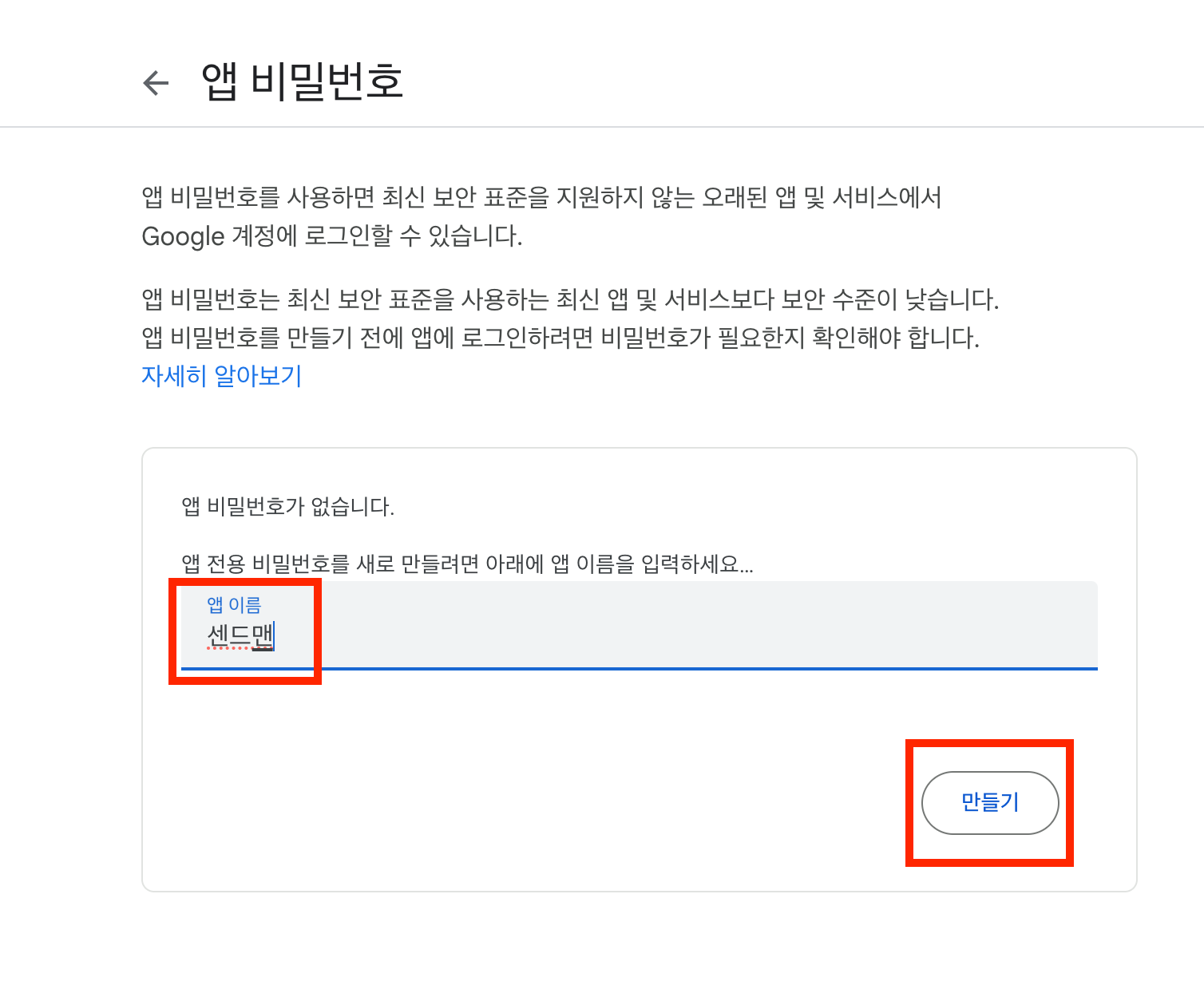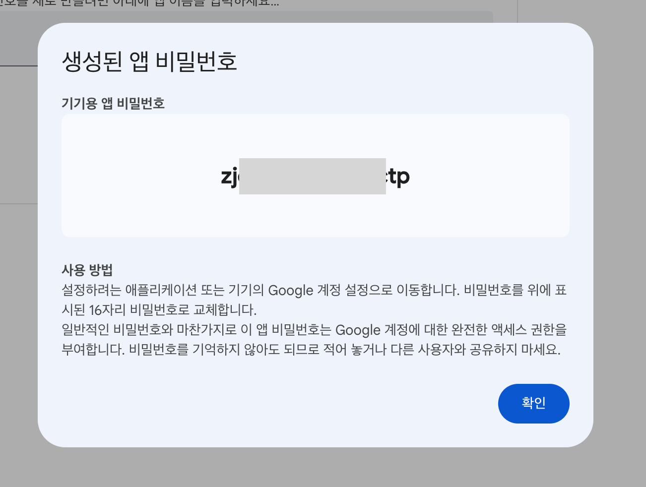 애플리케이션 비밀번호를 생성했다면: 생성한 애플리케이션 비밀번호