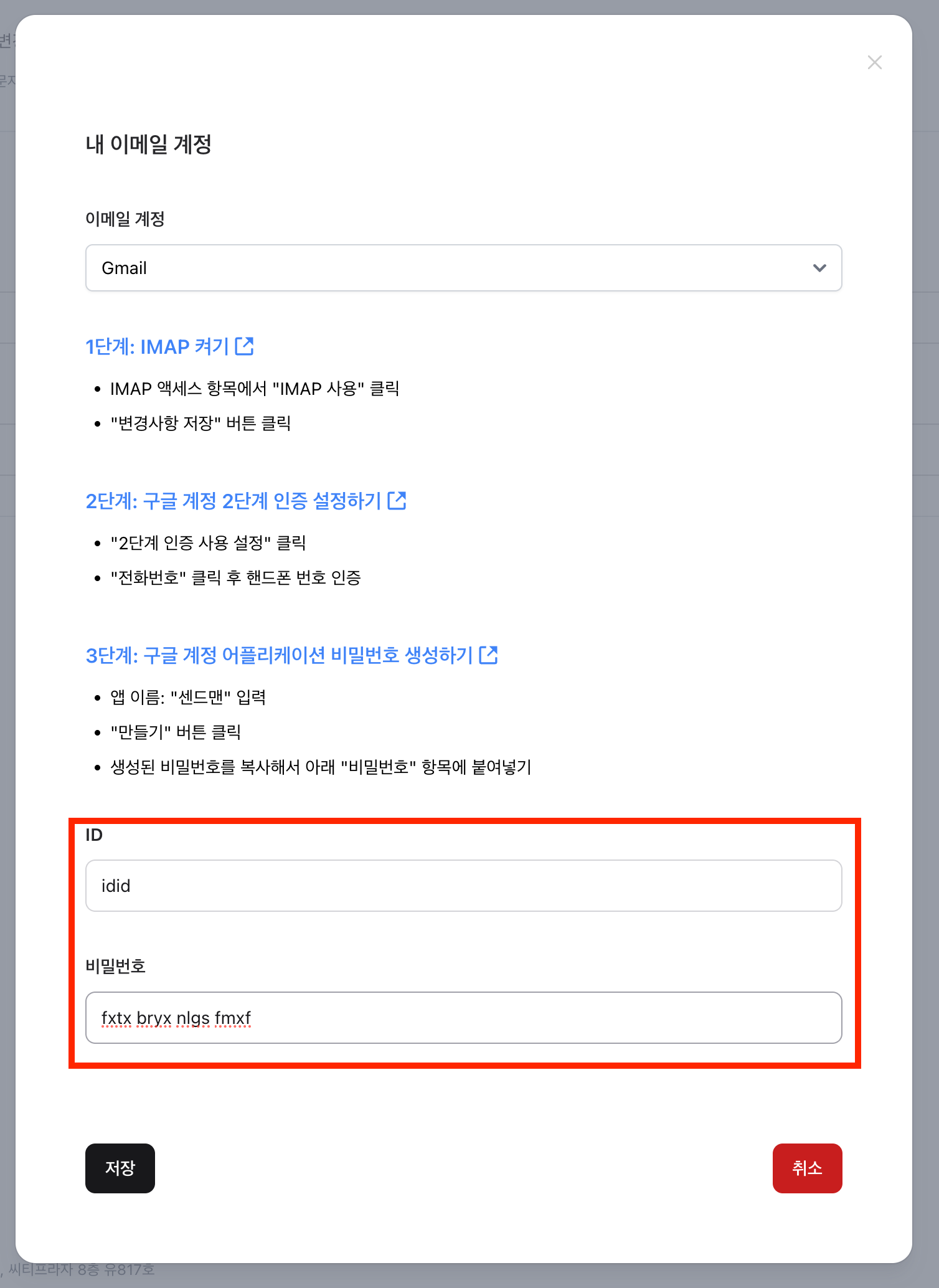 현재 Gmail과 네이버 메일 계정 연동을 지원합니다.