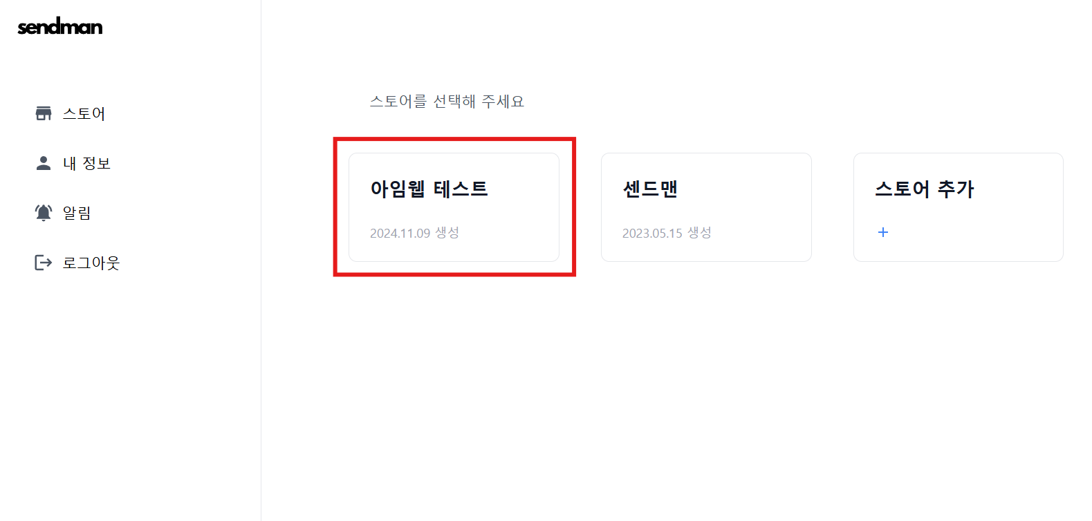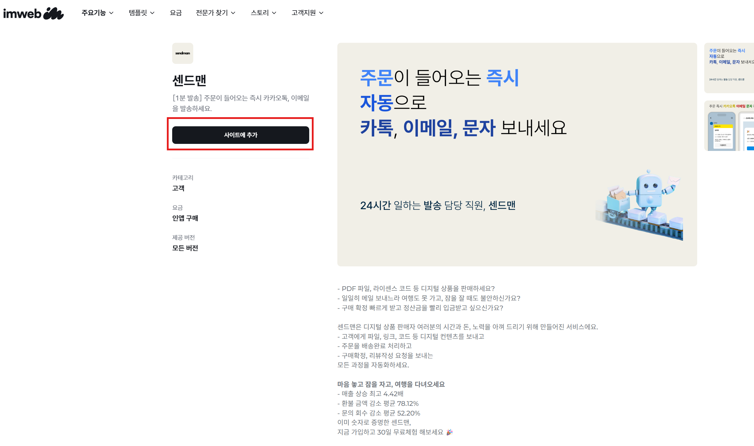 아임웹 앱스토어의 센드맨 페이지에 접속합니다.