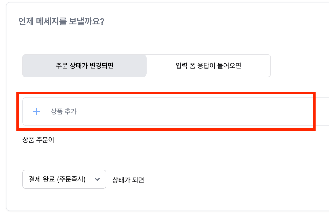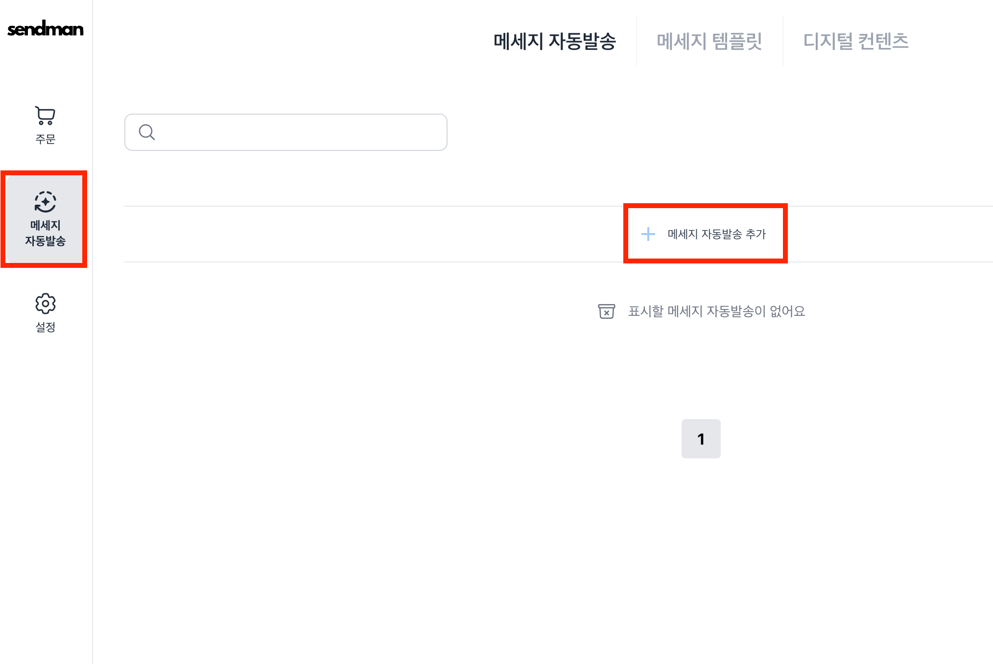 우선 [메세지 자동발송] 페이지에서 "메세지 자동발송 추가"를 눌러주세요.