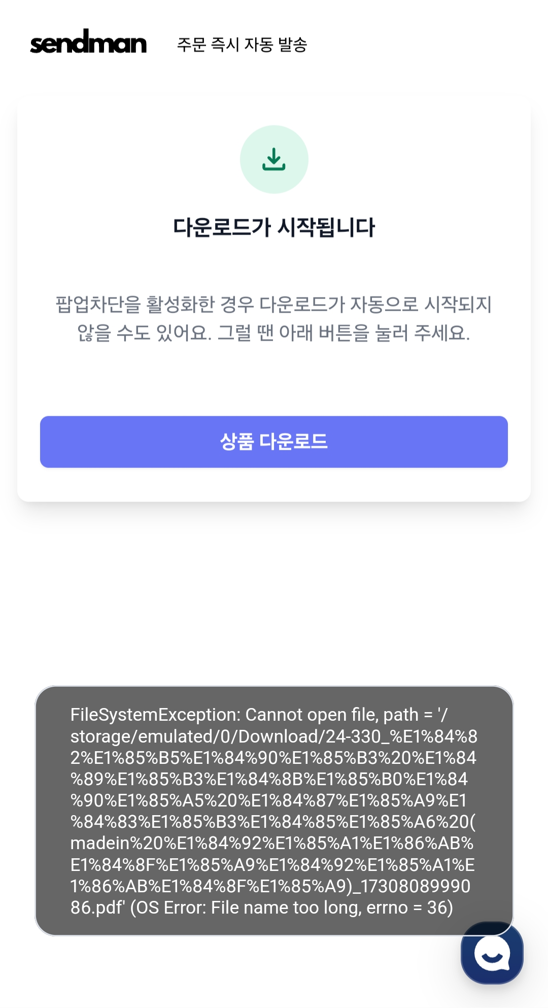 이럴 때는 데스크탑을 이용해 센드맨 다운로드 페이지 (https://sendman.xyz/download) 에서 구매 내역을 직접 확인하고 파일을 다운받을 수 있어요.