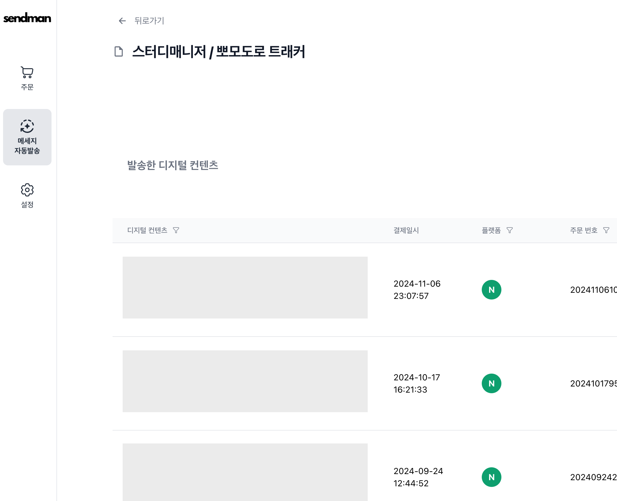 어떤 주문에 어떤 디지털 컨텐츠를 발송했는지 한 눈에 확인할 수 있고